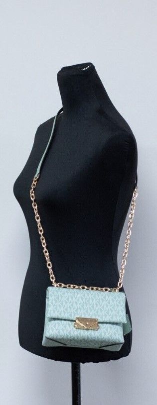 Cece Small Sea Green Signature PVC Convertible Flap Crossbody Bag